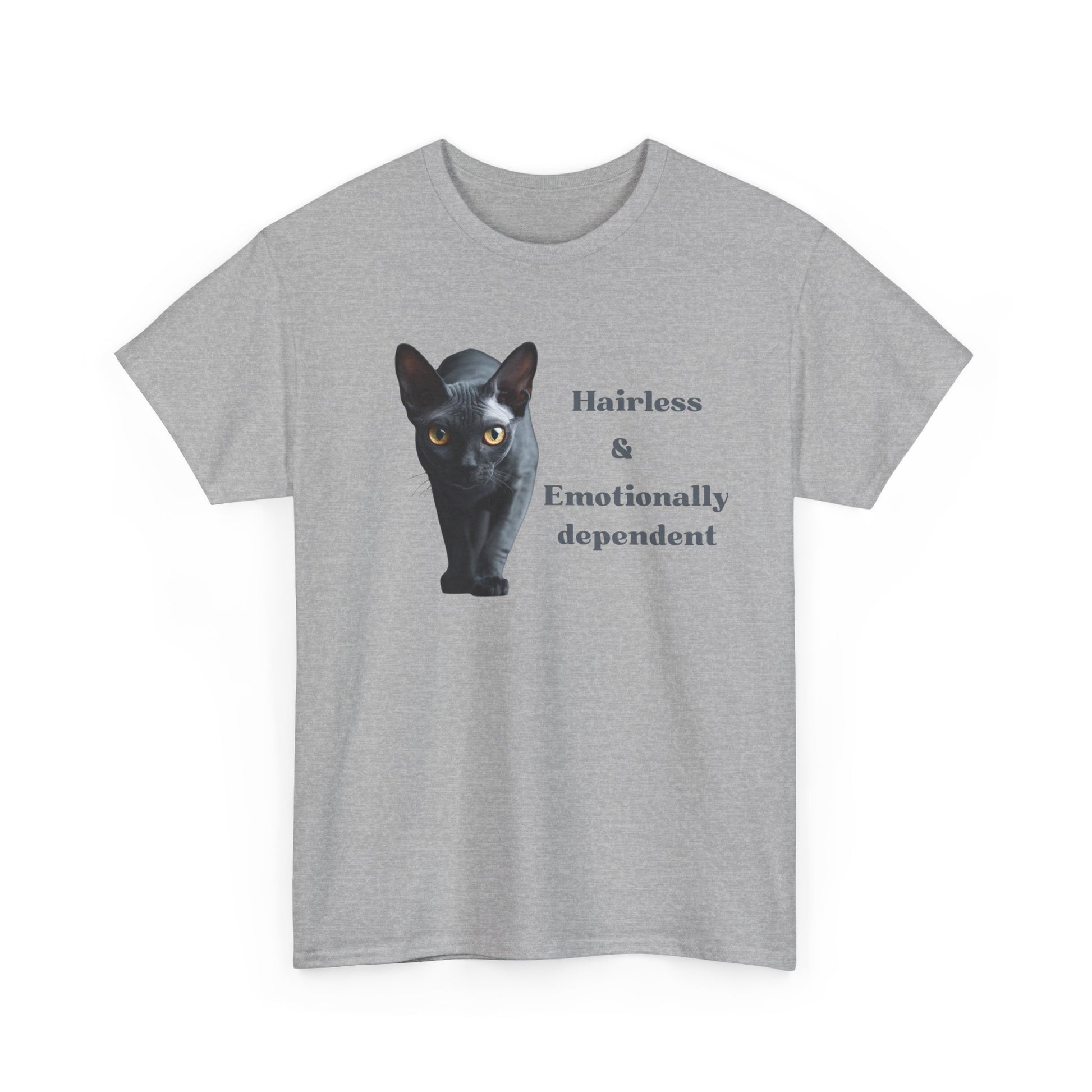 For cat lovers who understand the struggle: zero fur, all feelings. This cozy tee celebrates your Sphynx’s clingy charm and your own love for them. Soft, comfy, and perfect for lounging with your hairless, emotionally dependent roommate.